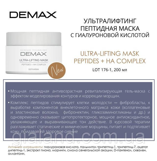 Ультраліфтинг гель-маска з гіалуроновою кислотою пептидами Demax Demax ultra lifting mask peptides 200 мл